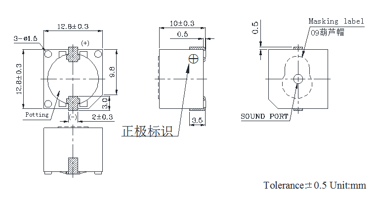 | 9 | Димензија | мм | Д12,8×Ш12,8×В10,0 | Погледајте приложени цртеж. |